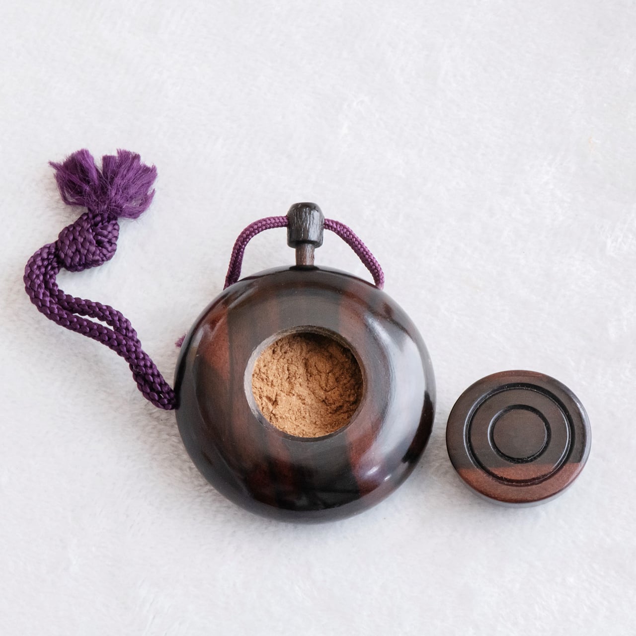 昔から仏具で使用されている桜材の塗香入れです。ご使用になられてから5年程経過すると、写真2枚目の左手前のような、とても美しいツヤが出てまいります。