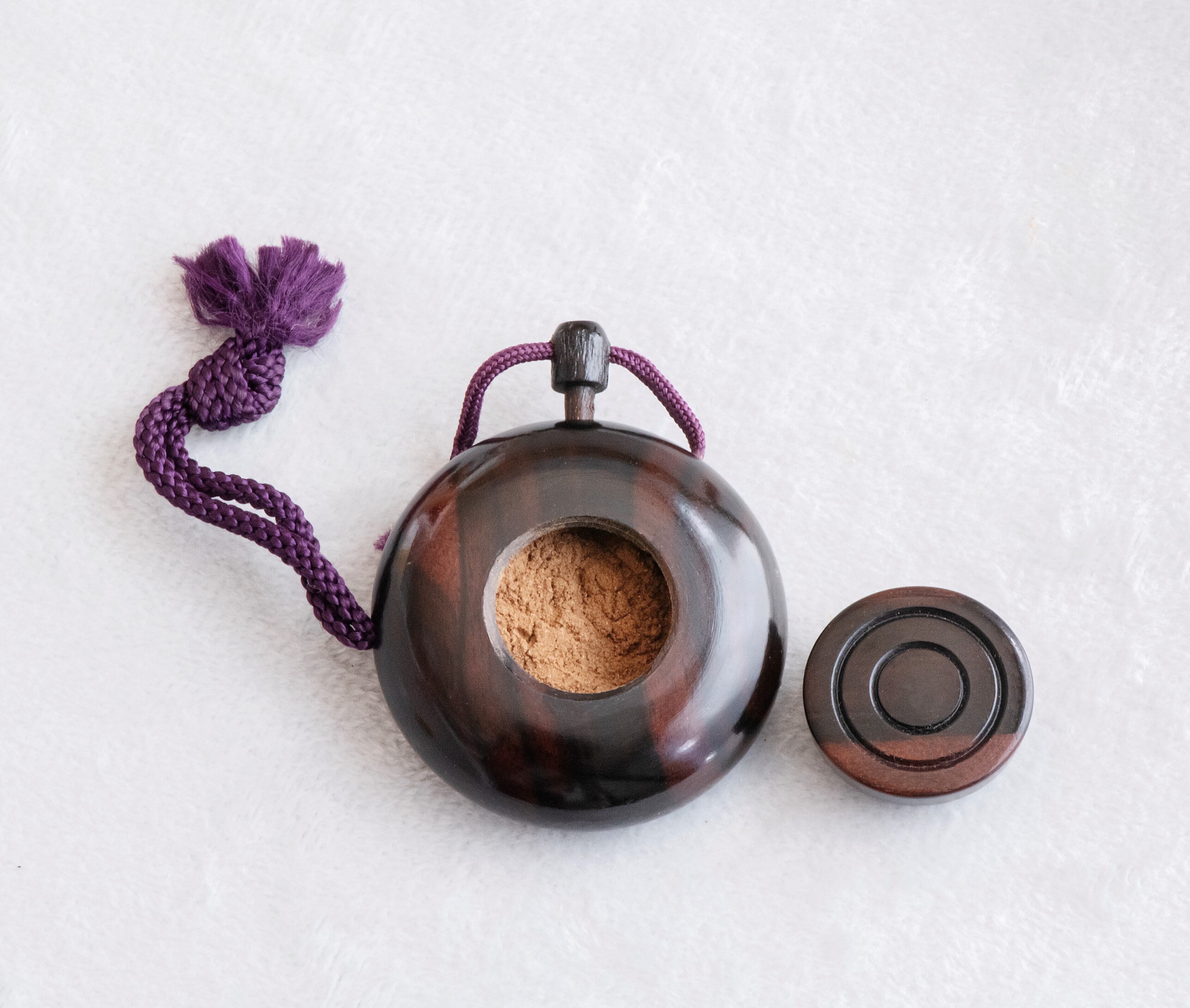 塗香入れがセットとなります。黒檀、紫檀、桜の中からお一つお選び頂けます。