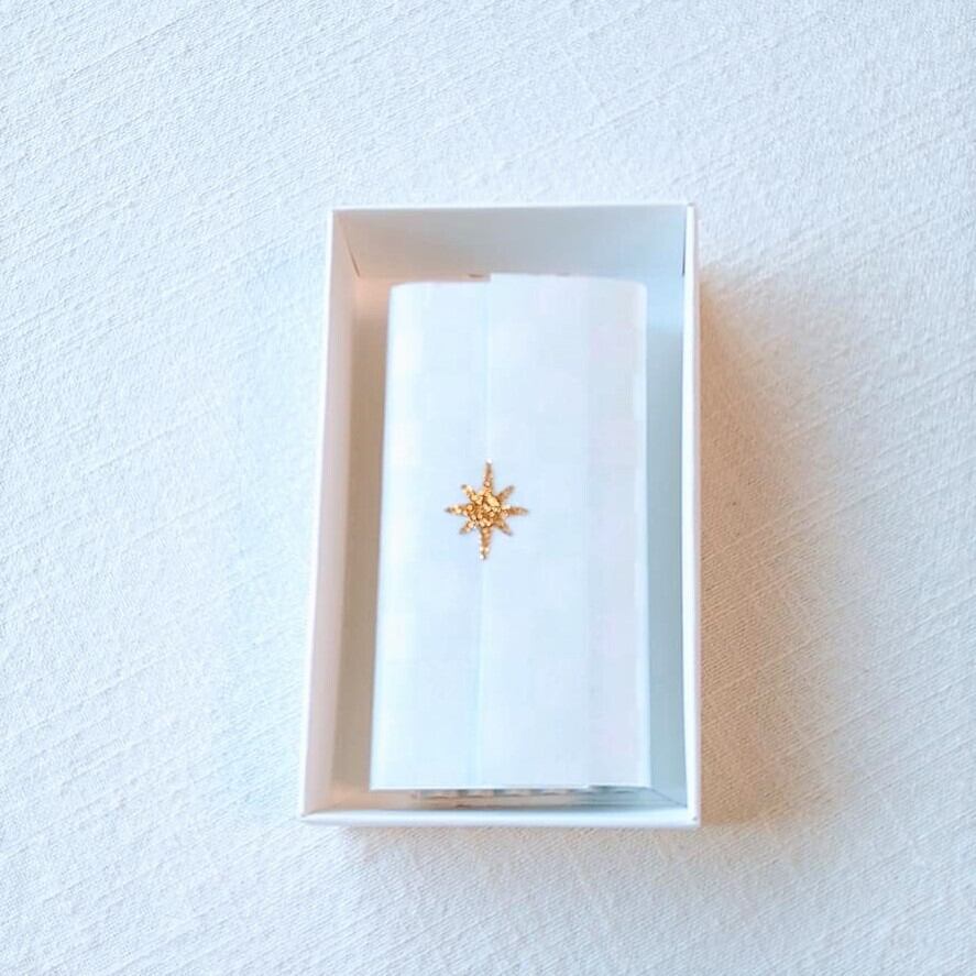 ●無地のパールトーンの紙を2枚は、箱の蓋を包むための紙です。香と曲で感じたことや、今の気分など、様々を自由に描いてみてください。何も書かずでも大丈夫です。